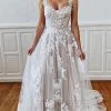 V-Neck A-line Wedding Dress Sleeveless Tulle Lace Appliques Bridal Dress