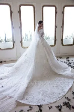 Babyonlinewholesale offers Luxury Off Shoulder Long Sleeves White Lace Ball Gown with Cathedral Train online at an affordable price from Lace to A-line skirts. Shop for gorgeous Long Sleeves collections for your big day.