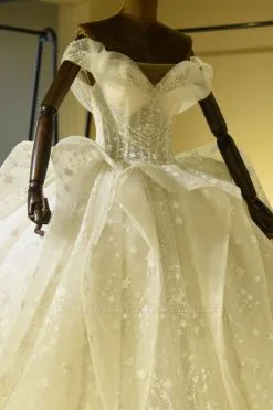 Off Shoulder Sweetheart Mermaid Wedding Gown With Chapel Drag Skirt