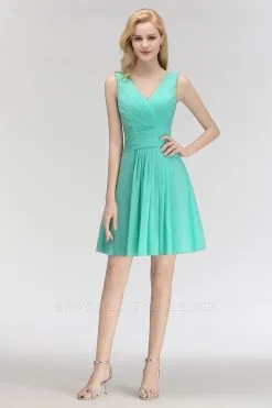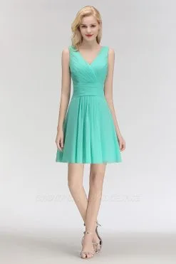 | product name | Mabel, Modest Ruffles Sexy V-Neck Sleeveless Short Bridesmaid Dress |