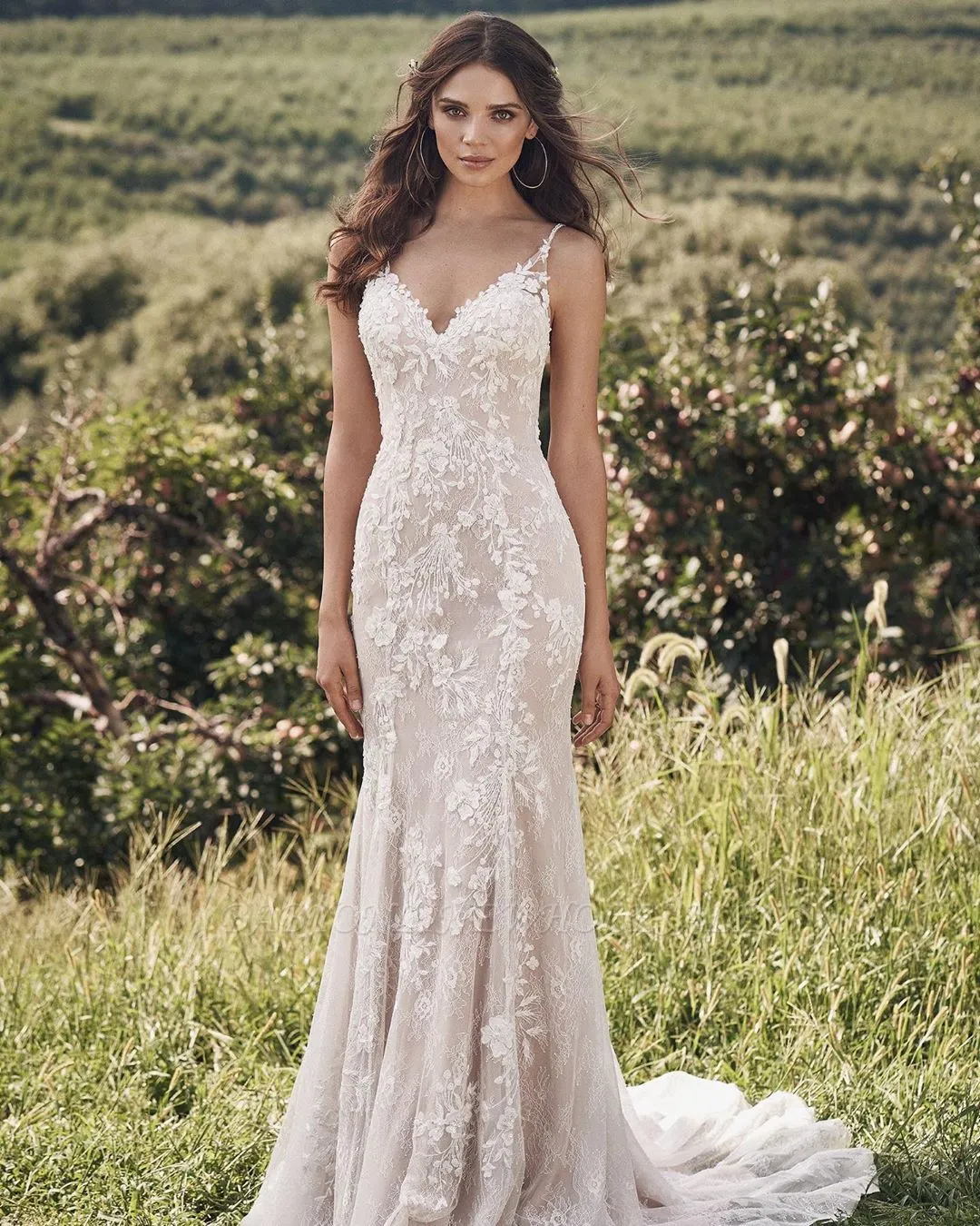 Elegant Spaghetti Strap Sleeveless Mermaid Wedding Dress With Appliques Pearls