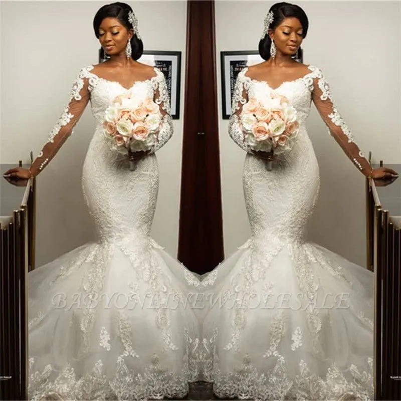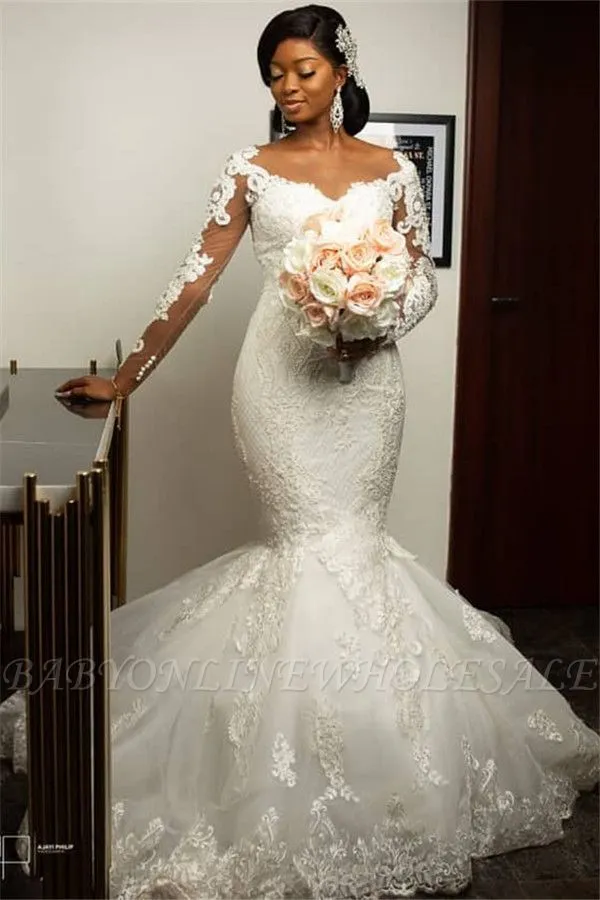 | product name | Mermaid Lace Appliques Wedding Dresses with Sleeves, Sexy Plus Size Wedding Gowns Onine |