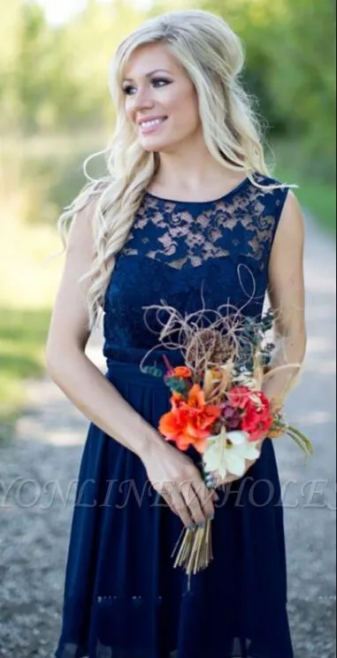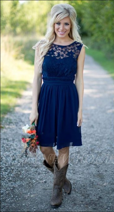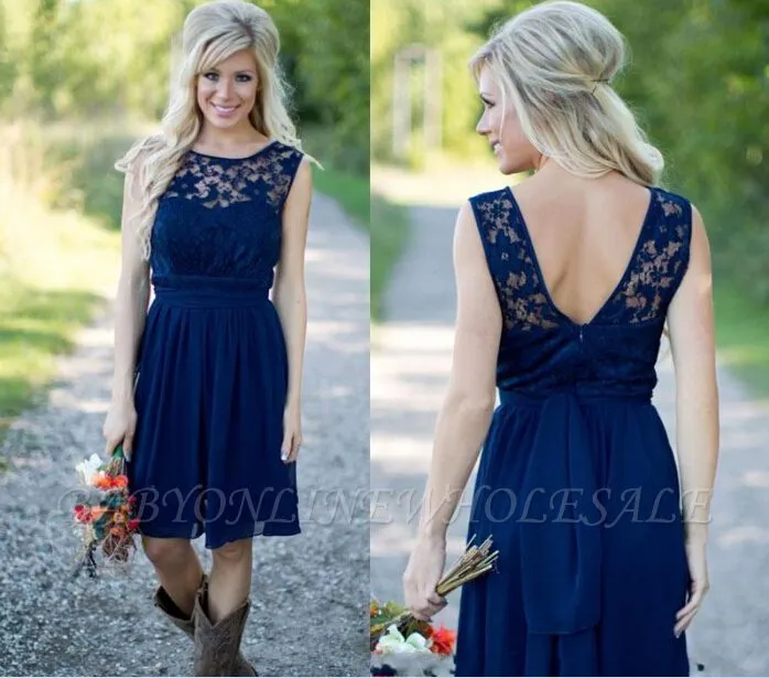 | product name | Navy Blue Lace Short Bridesmaid Dresses |