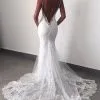 Chic Floral Lace Mermaid Wedding Dress Sleeveless V-Neck Side Slit Bridal Dress
