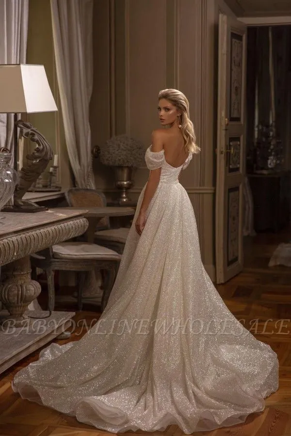 Off The Shoulder Sweetheart Gems Luxury Flowers Wedding Dress