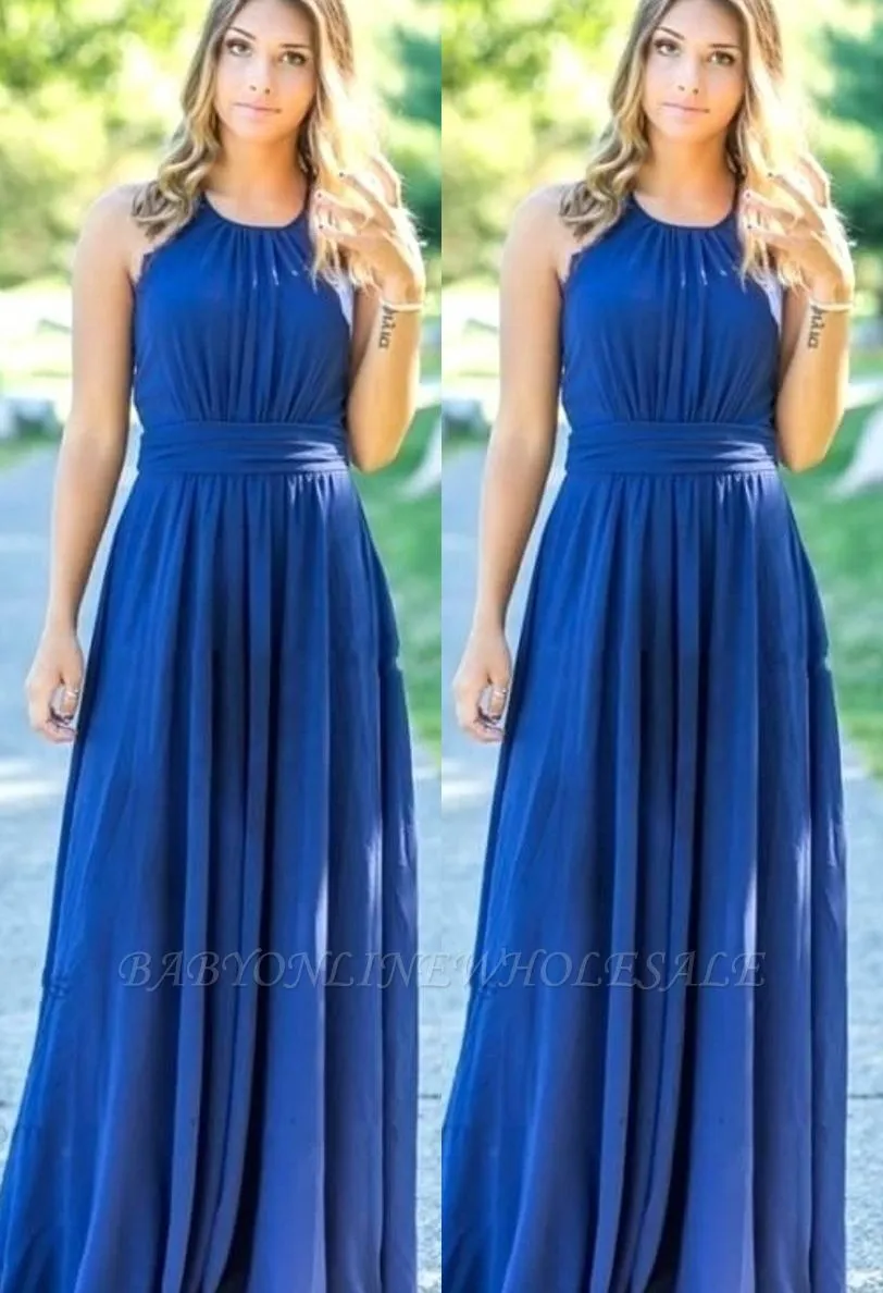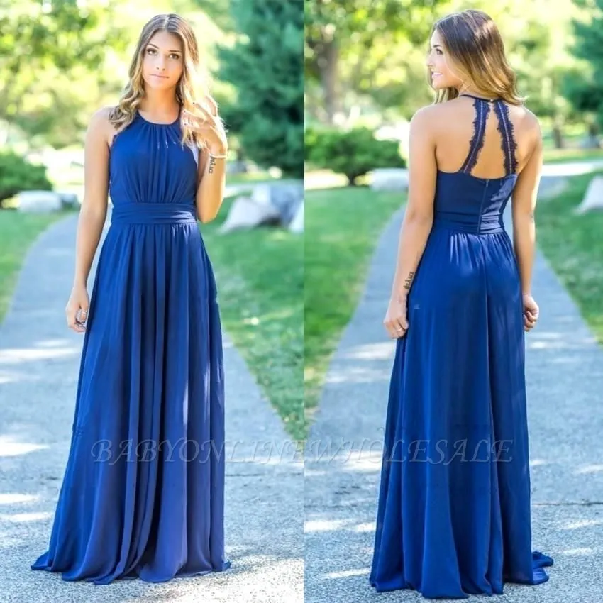 | product name | Ocean Blue Halter Chiffon Bridesmaid Dresses, A-line Open Back Floor-length Bridesmaid Dresses |