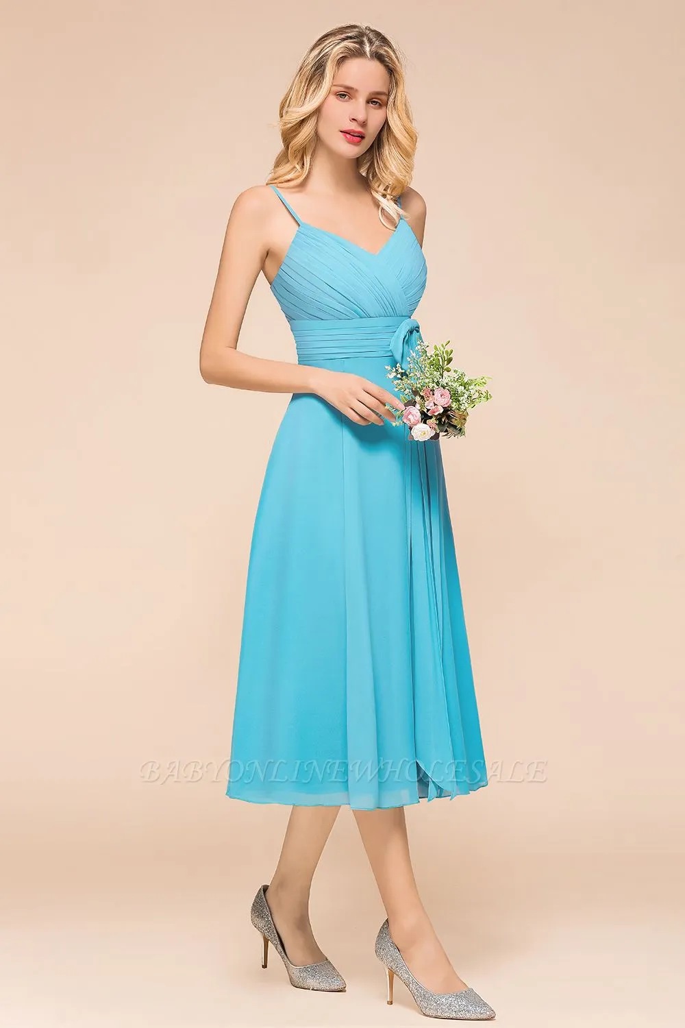 Looking for Bridesmaid Dresses in 100D Chiffonstyle, and Gorgeous Ribbons,Draped work? Babyonlinewholesale has all covered on this elegant Ocean Blue Ruffle Chiffon Ankle Length Bridesmaid Dress Beach Wedding Wear Dress.