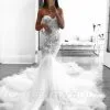 V-neck Sleeveless Mermaid Wedding Dresses Sexy Lace Appliques Bridal Gown WE0196