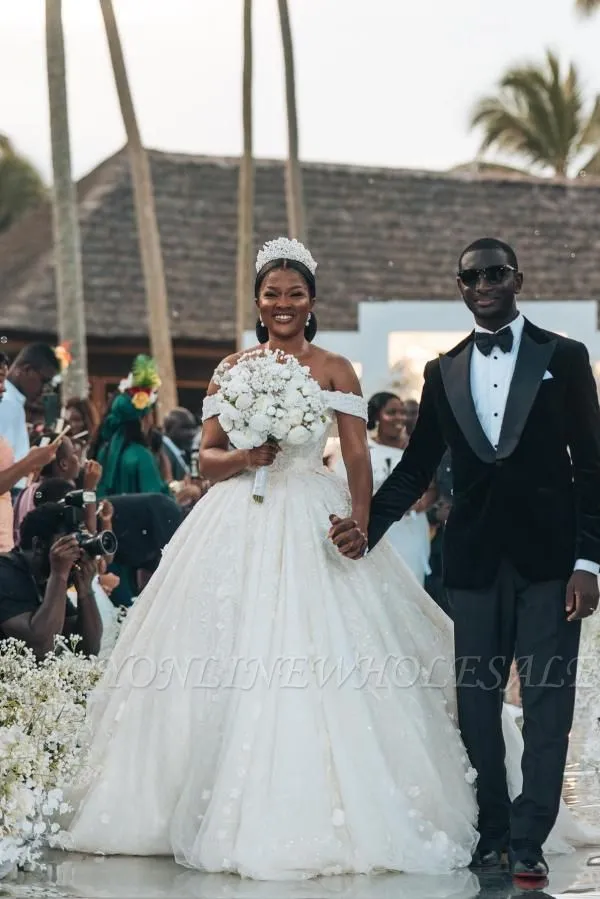 Luxury Ivory Ball Gown Off The Shoulder V-neck Wedding Dress