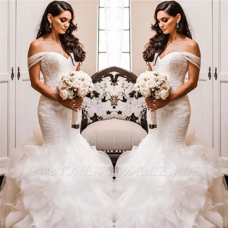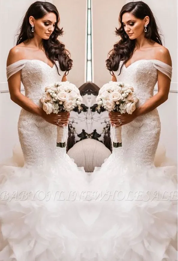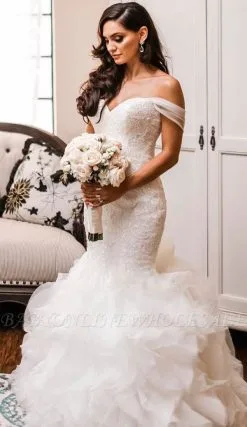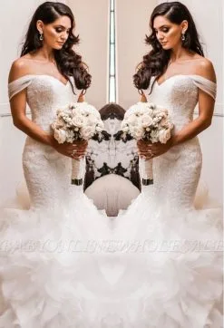 | product name | Off The Shoulder Puffy Ruffles Wedding Dresses, Sheath Tulle Sexy Lace Bridal Gowns |