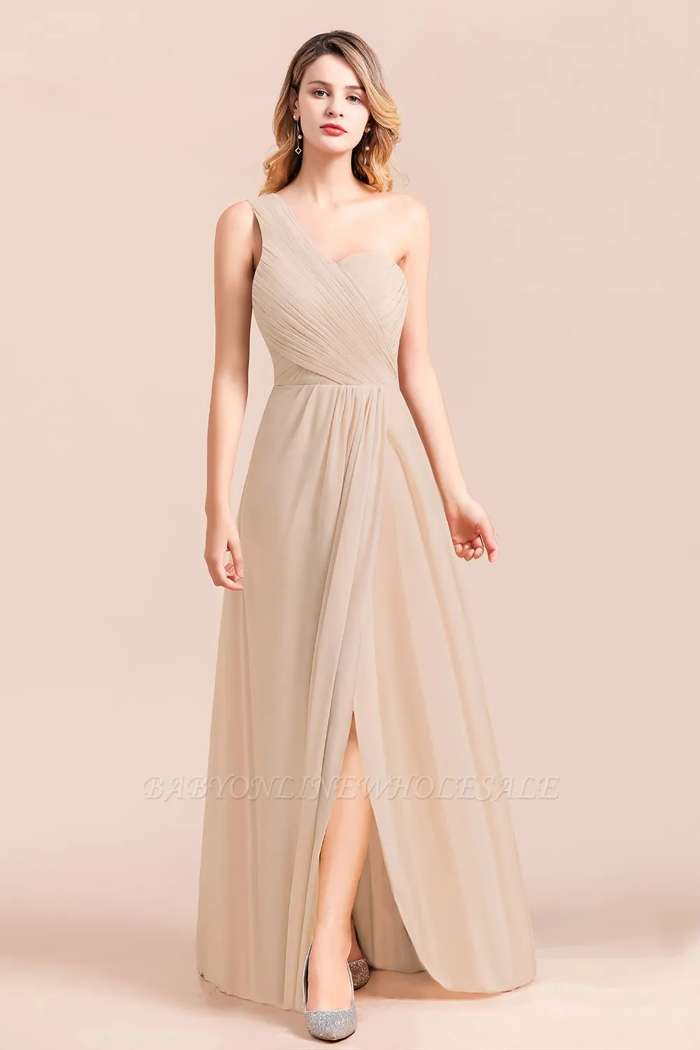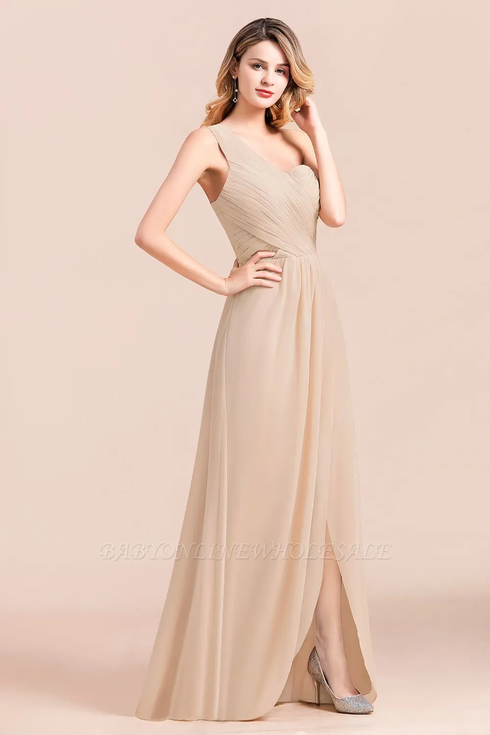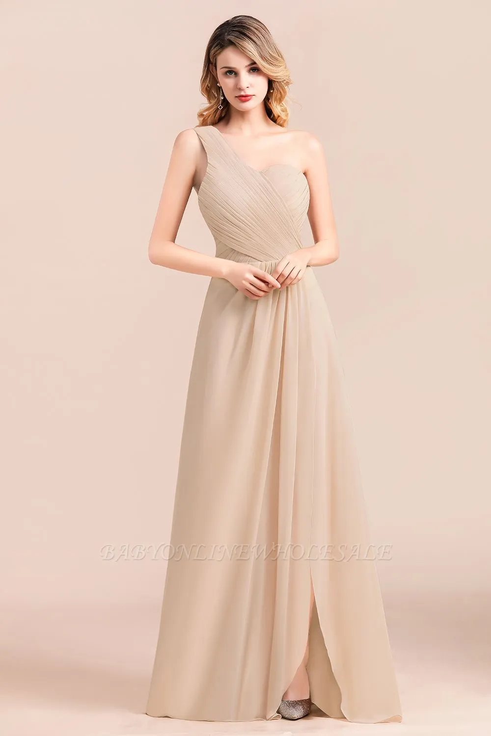 Looking for in 100D Chiffonstyle, and Gorgeous Draped work? Babyonlinewholesale has all covered on this elegant One Sholder Simple Wedding Guest Dress Aline Chiffon Evening Swing Dress with Side Slit.
