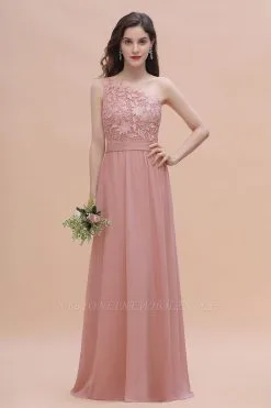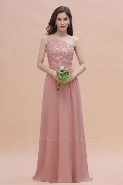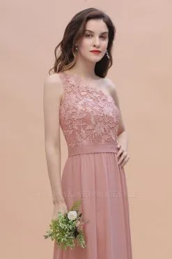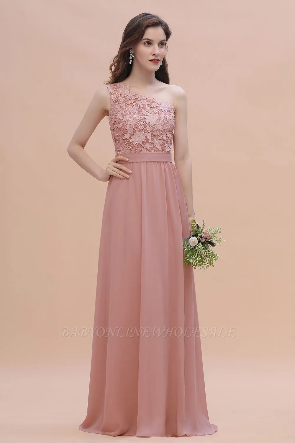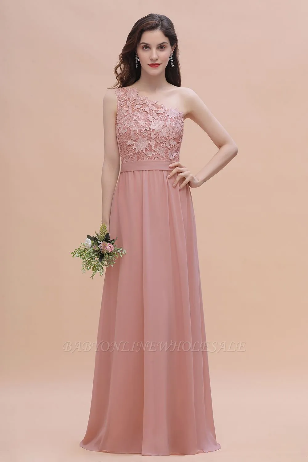 Looking for Bridesmaid Dresses in Lacestyle, and Gorgeous Lace work? Babyonlinewholesale has all covered on this elegant One Shoulder Dusty Pink Floral Pattern Aline Bridesmaid Dress.