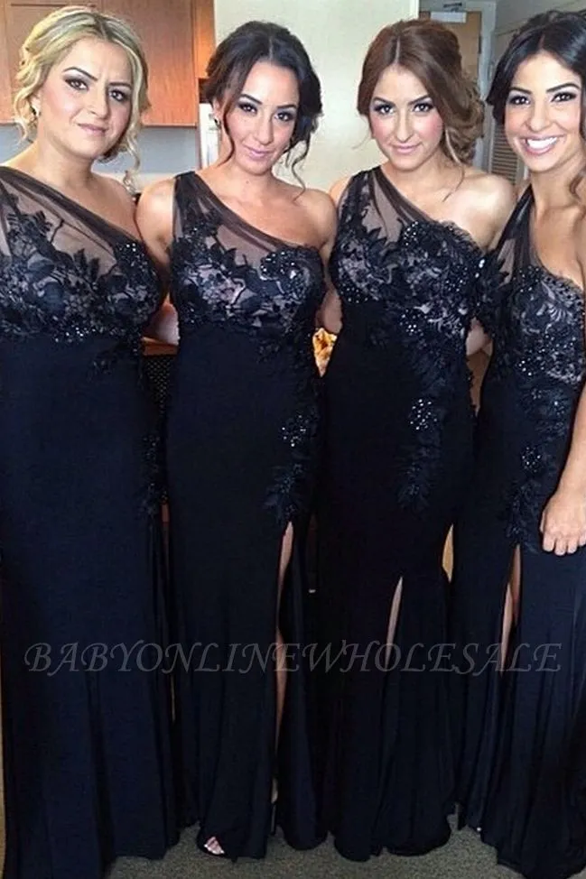 | product name | One-Shoulder Sheath-Column Floor-length Appiques Split-Front Bridesmaid Dresses |