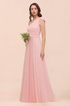 | product name | One Shoulder Soft Chiffon Bridesmaid Dress Pink Maid of Honor Dress |