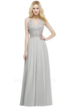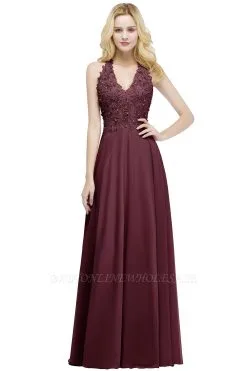 | product name | PAM, A-line V-neck Sleeveless Long Appliques Chiffon Bridesmaid Dresses |