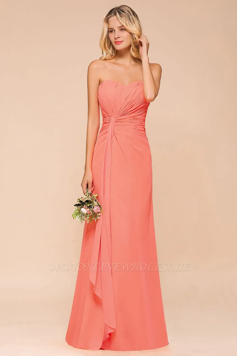 | product name | Peach Sweetheart Ruffle Chiffon Slim Mermaid Bridesmaid Dress |