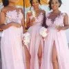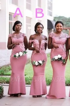 custom made Pink Mermaid Bridesmaid Dress | 2023 Lace Cap Sleeve Wedding Reception Dress