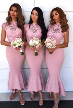 | product name | Pink Mermaid Bridesmaid Dress, Lace Cap Sleeve Wedding Reception Dress BM0614 |