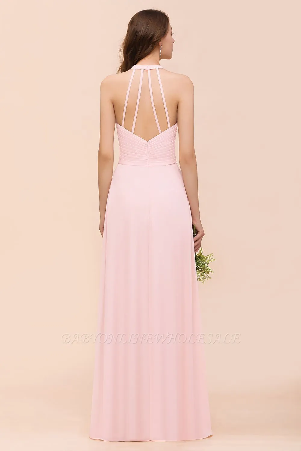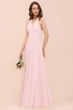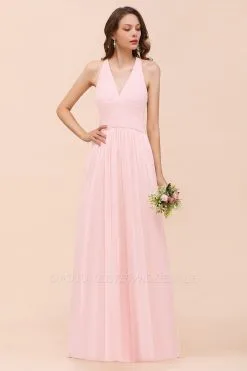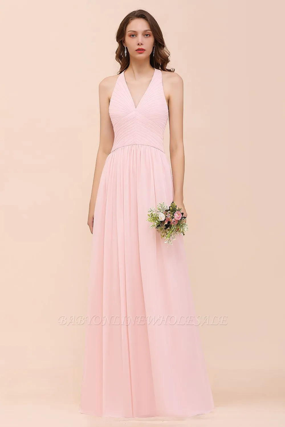 Looking for Bridesmaid Dresses in 100D Chiffon, A-line style, and Gorgeous Draped,Side-Draped work? Babyonlinewholesale has all covered on this elegant Pink V-Neck Simple Bridesmaid Dress Aline Chiffon Wedding Guest Dress.