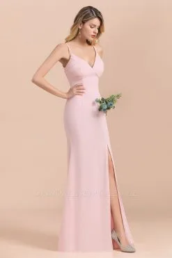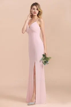Looking for Bridesmaid Dresses in 100D Chiffon, Column,Mermaid style, and Gorgeous Draped,Split Front work? Babyonlinewholesale has all covered on this elegant Pink V-Neck Sleeveless Mermaid Bridesmaid Dress Wedding Wear Dress with Side Slit.
