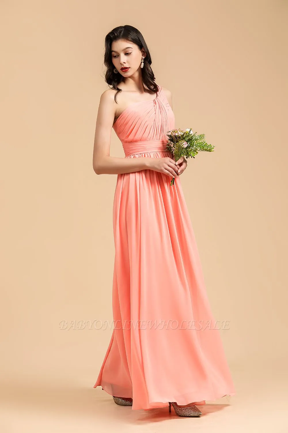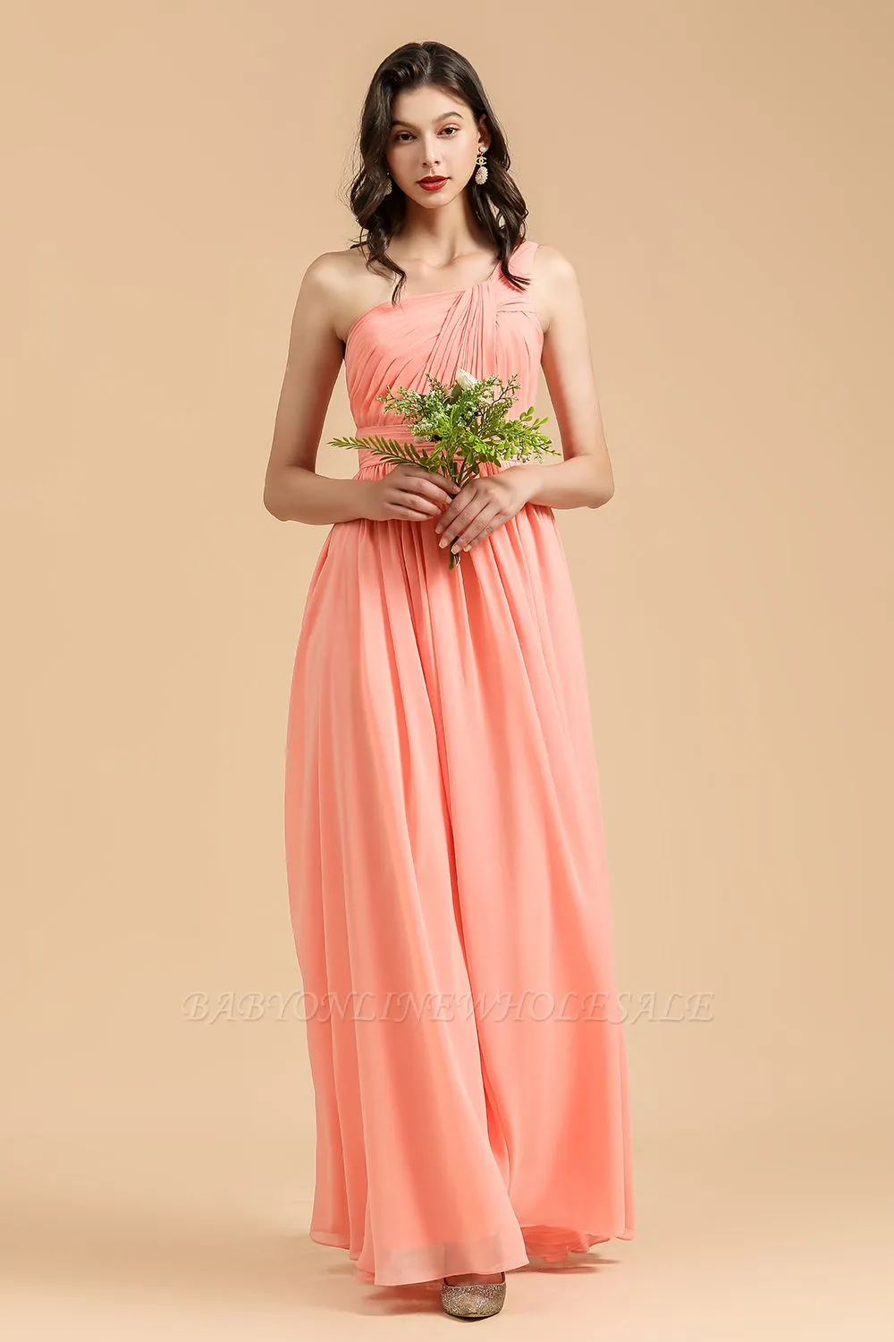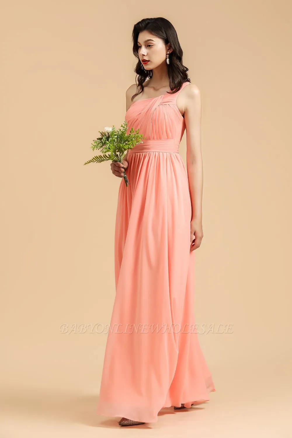 Looking for Bridesmaid Dresses in 100D Chiffon, A-line style, and Gorgeous Draped work? Babyonlinewholesale has all covered on this elegant Pleated Chiffon One-Shoulder Bridesmaid Dress Sleeveless Long Wedding Party Dress.