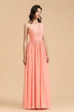 Be the first to review “Pleated Chiffon One-Shoulder Bridesmaid Dress Sleeveless Long Wedding Party Dress” Cancel reply