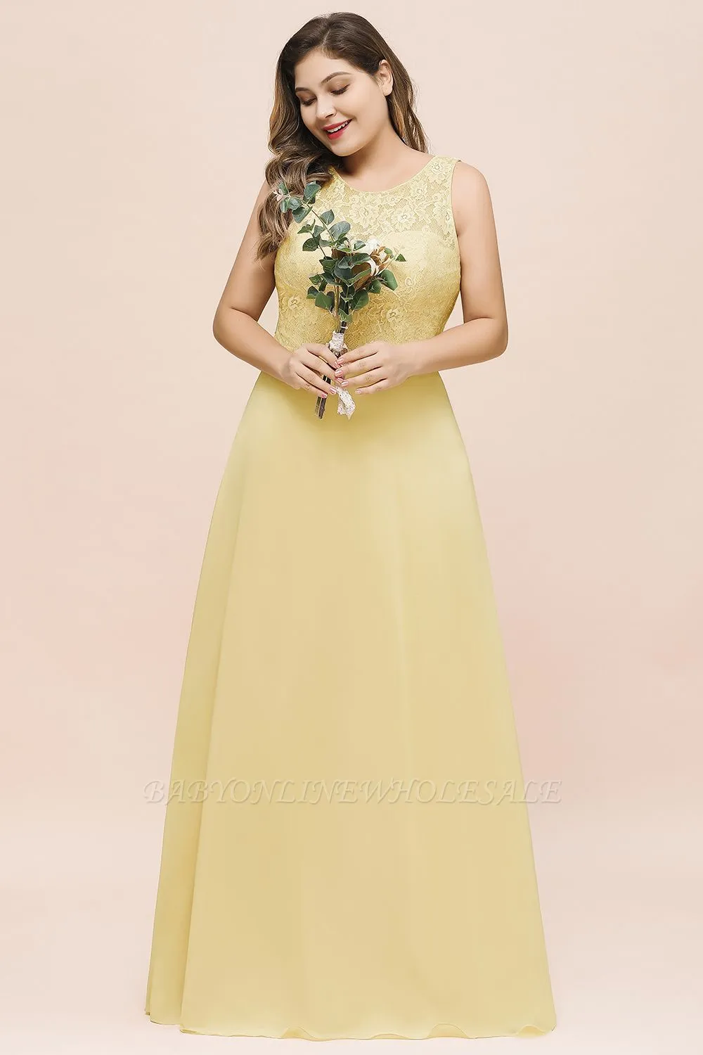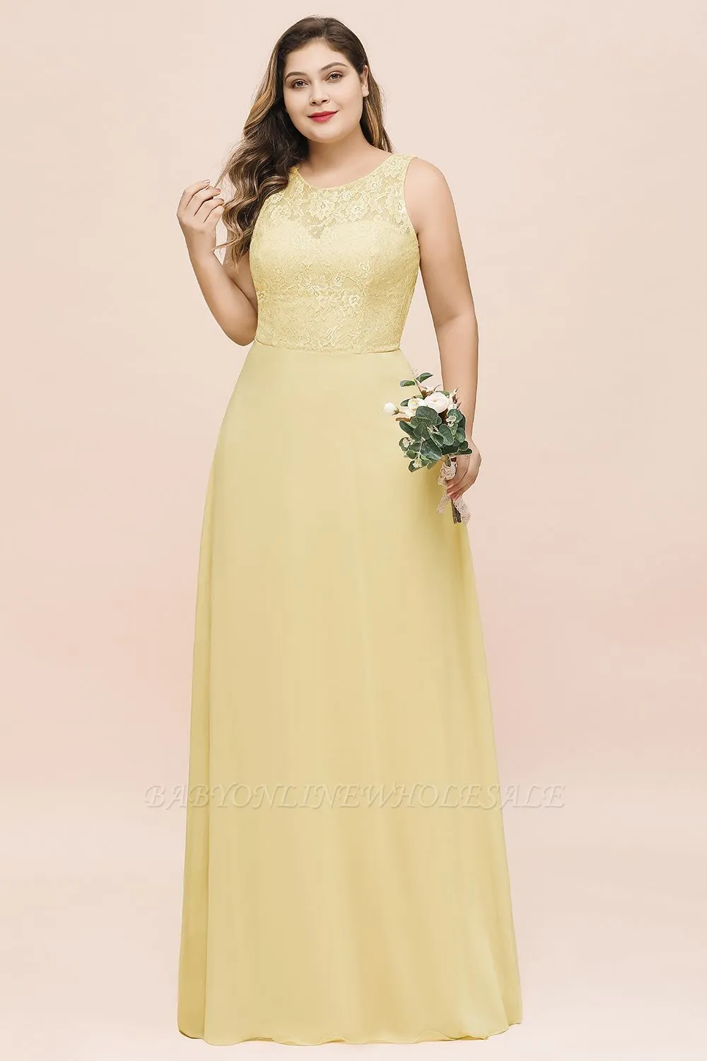 | product name | Plus Size Chiffon Lace Bridesmaid Dress Sleeveless Aline Evening Maxi Dress |