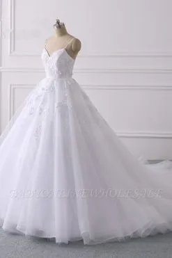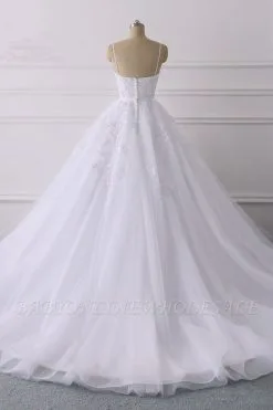 | product name | Premium A-Line Spaghetti Strap Floor Length Sleeveless Tulle Wedding Dress with Appliques |
