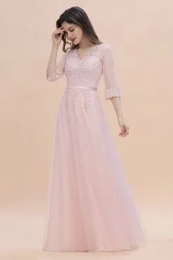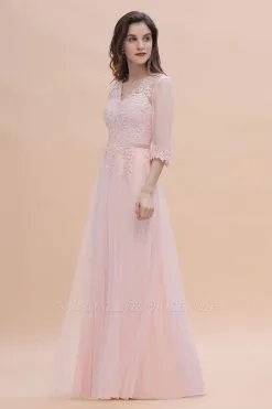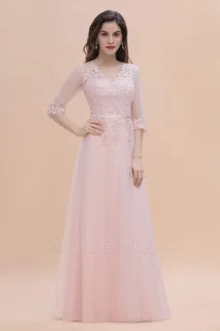 Looking for Bridesmaid Dresses in Lacestyle, and Gorgeous work? Babyonlinewholesale has all covered on this elegant Romantic 3/4 Sleeves Pink Wedding Guest Dress Lace Appliques.