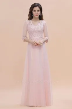 Looking for Bridesmaid Dresses in Lacestyle, and Gorgeous work? Babyonlinewholesale has all covered on this elegant Romantic 3/4 Sleeves Pink Wedding Guest Dress Lace Appliques.