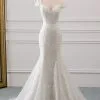 Mermaid Spaghetti Sleeveless Appliqued Lace Court Train Wedding Dresses