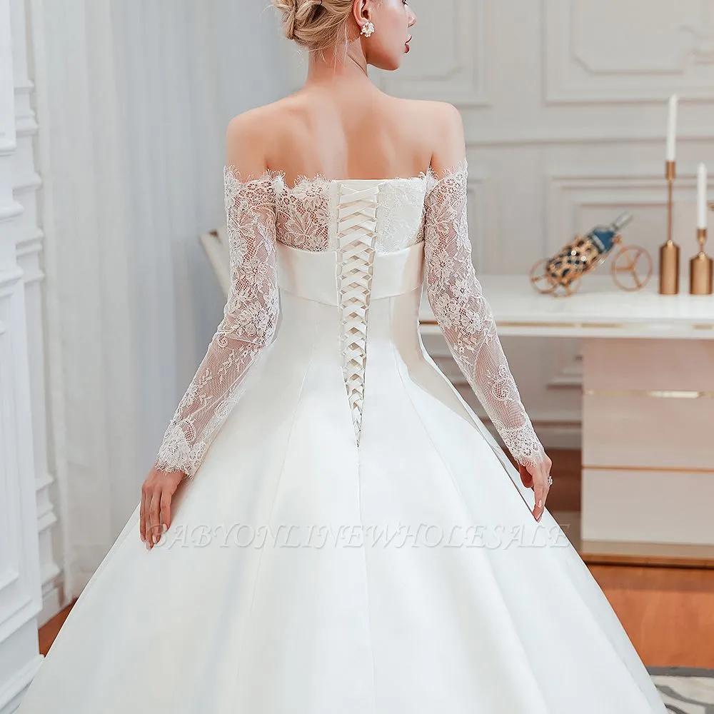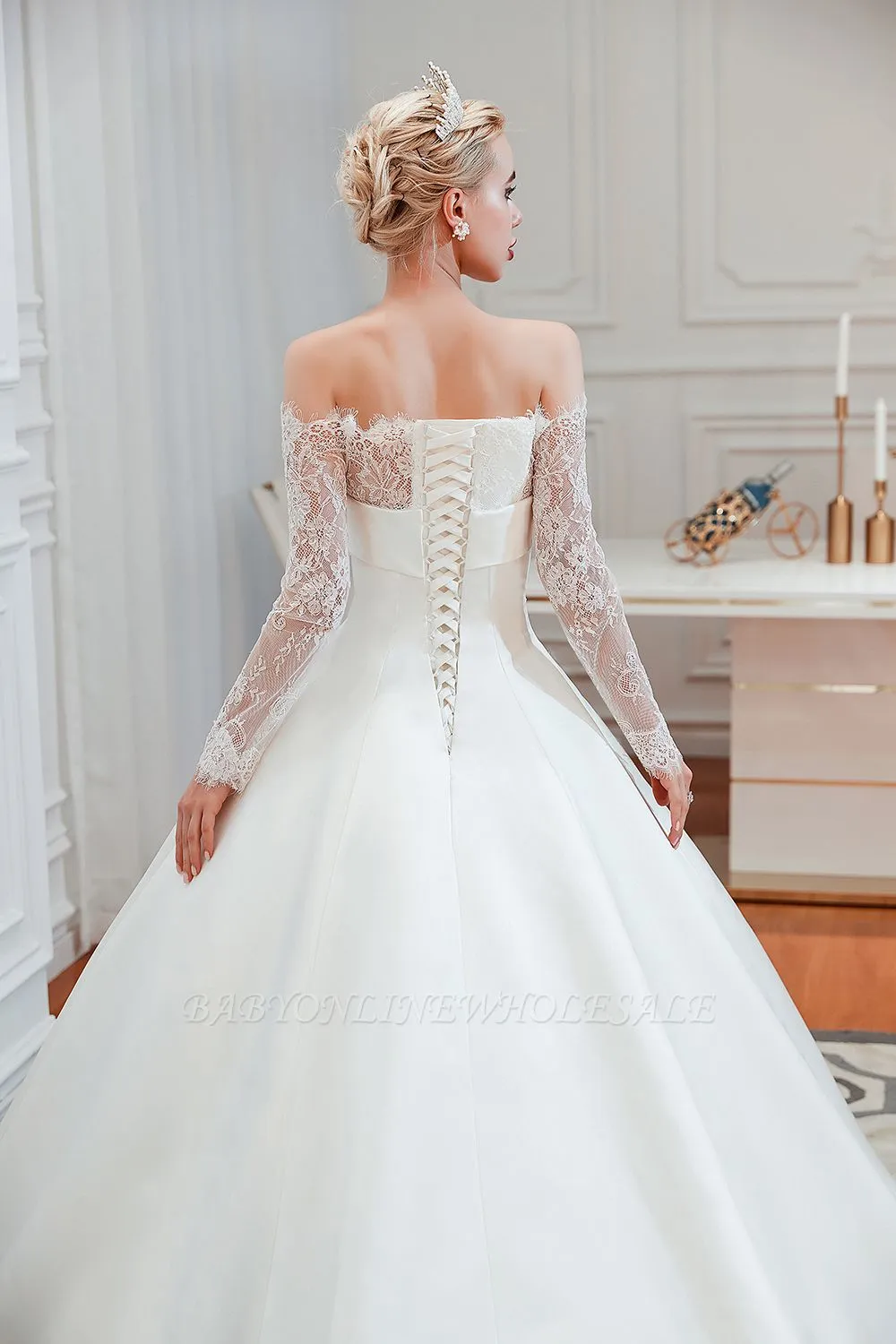 | product name | Romantic Lace Long Sleeves Princess Satin Wedding Dress, Princess Bridal Gowns with Cathedral Train |