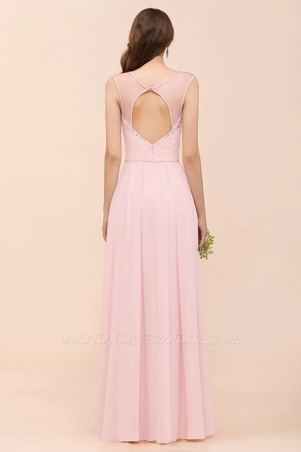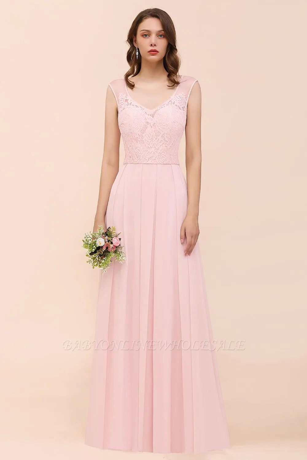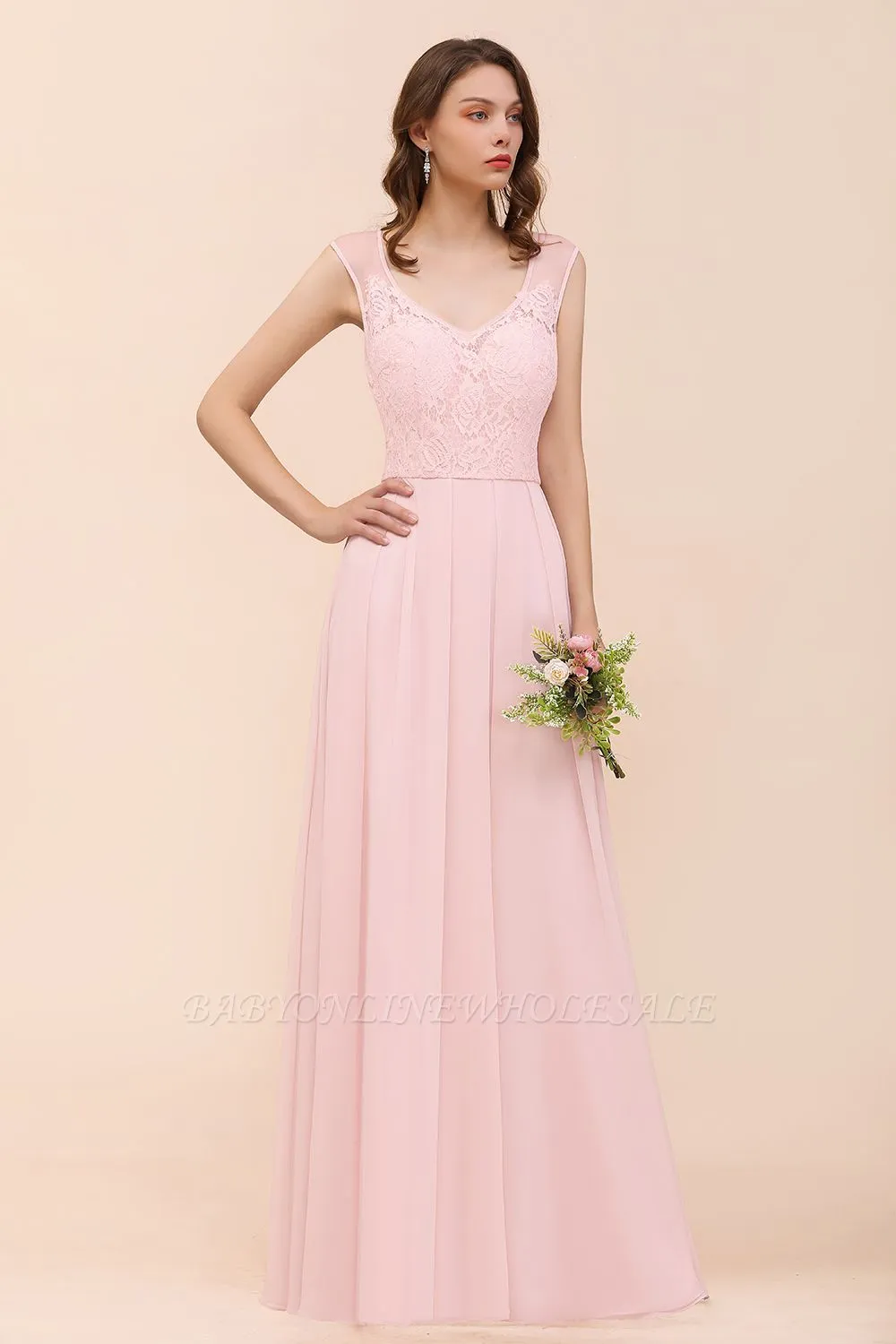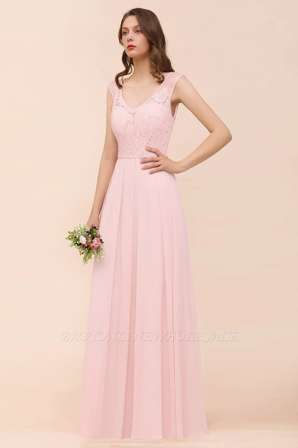Looking for Bridesmaid Dresses in 100D Chiffon,Tulle, A-line style, and elegant Lace work? Babyonlinewholesale has all covered on this unique Romantic Sleeveless Lace Chiffon Wedding Guest Dress V-Neck Bridesmaid Dress.