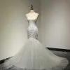 Affordable Strapless Tulle Lace Wedding Dress | Chic Mermaid Sleeveless Long Dress For Wedding
