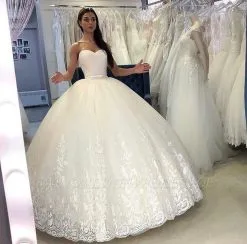 | product name | Romantic Sweetheart Floral Lace Ball Gown White Long Bridal Dress |