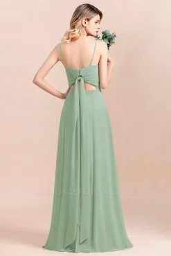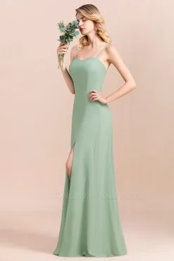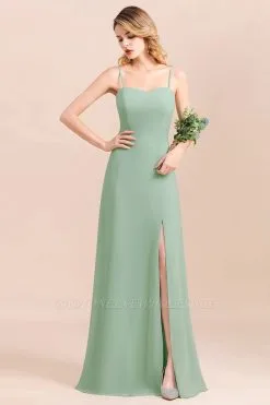 Looking for in 100D Chiffon, A-line style, and elegant Split Front work? Babyonlinewholesale has all covered on this unique Romantic Sweetheart Sage Garden Bridesmaid DressSpaghetti Straps Long Special Occasion Dress with Side Slit.