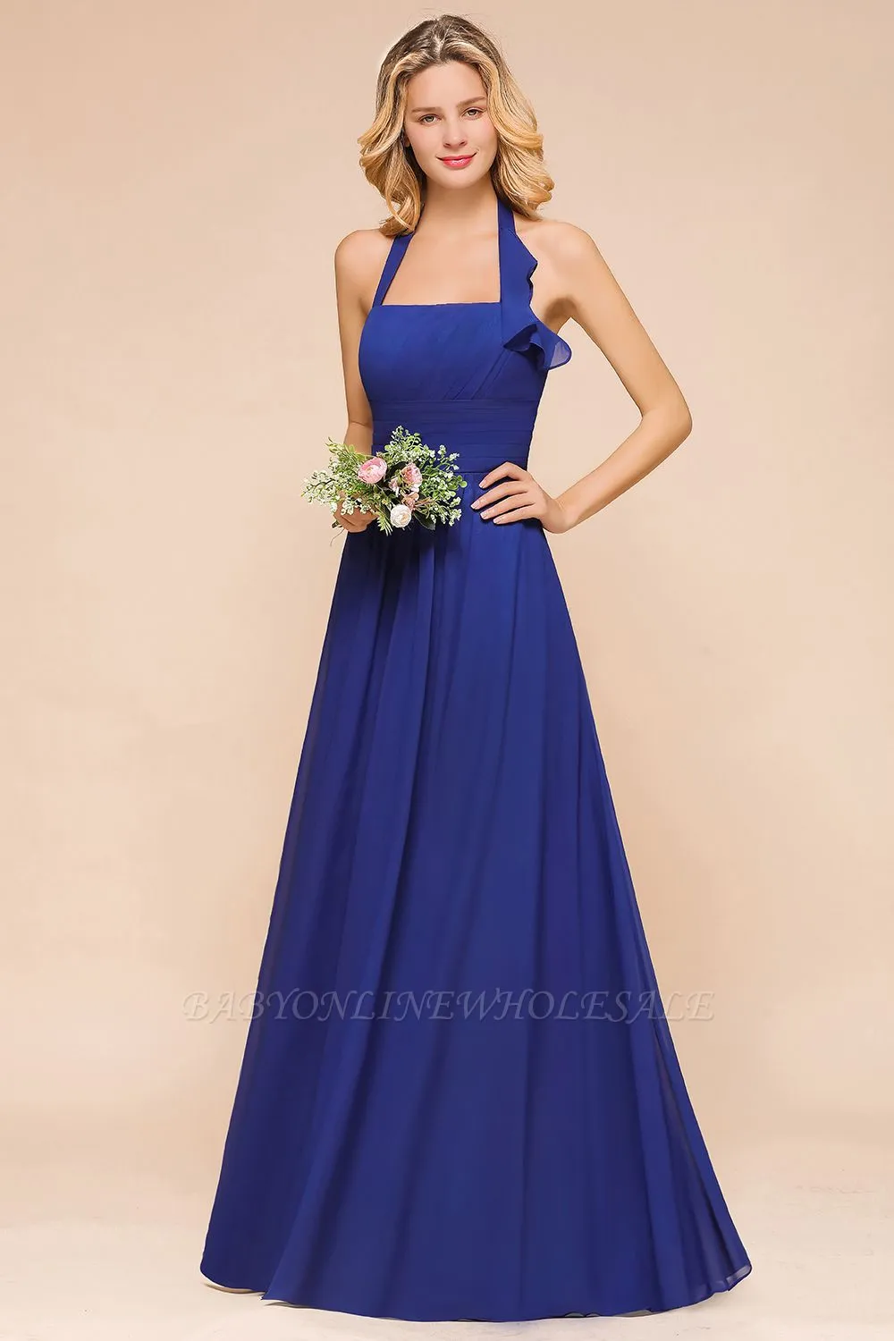 Babyonlinewholesale offers Royal Blue Halter Ruffle Chiffon Long Wedding Party Dress online at an affordable price from 100D Chiffon to A-line Floor-length skirts. Shop for gorgeous Sleeveless Bridesmaid Dresses collections for your big day.