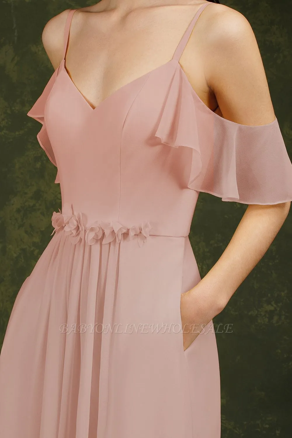 Ruffles Aline Spaghetti Strapes Tulle Long Prom Dress, Floor-length Bridesmaid Dresses,Cap SleevesBridesmaid Dresses