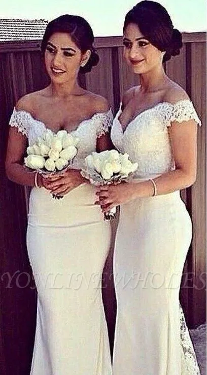 Looking for Bridesmaid Dresses in Stretch Satin, Mermaid style, and Gorgeous Lace,Appliques,Ribbons work? Babyonlinewholesale has all covered on this elegant SELENE | Mermaid Off-shoulder Sweetheart Sheer Lace Appliques Prom Dresses.