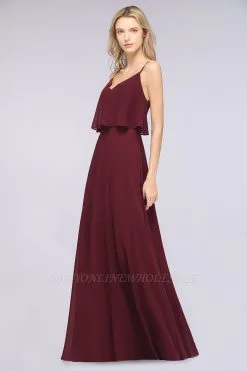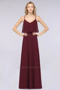 | product name | Sexy Chiffon Spaghetti-Straps V-Neck Floor-Length A-line Bridesmaid Dress |