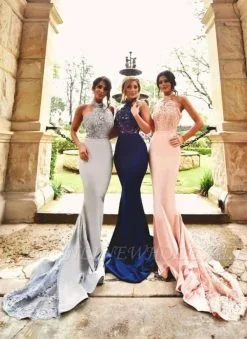 Babyonlinewholesale offers Sexy Halter-Neck Lace Appliques Halter Open-Back Bridesmaid Dresses at a cheap price from Same as Picture,White,Ivory,Blushing Pink,Candy Pink,Pearl Pink,Watermelon,Red,Fuchsia,Burgundy,Chocolate,Brown,Gold,Champagne,Orange,Daffodil,Regency,Grape,Lilac,Lavender,Sky Blue,Pool,Ocean Blue,Royal Blue,Ink Blue,Dark Navy,Black,Silver,Dark Green,Jade,Lime Green,Green,Sage, Stretch Satin to Mermaid them. Stunning yet affordable Sleeveless .