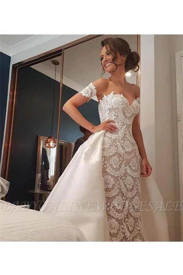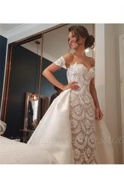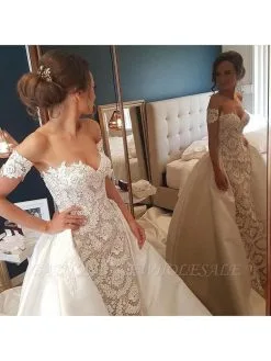 | product name | Sexy Lace Appliques Sweetheart Wedding Dresses, Overskirt Sleeveless Floral Bridal Gowns |