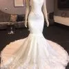 Luxury 3D Lace Applique High Neck Tulle Mermaid Wedding Dress