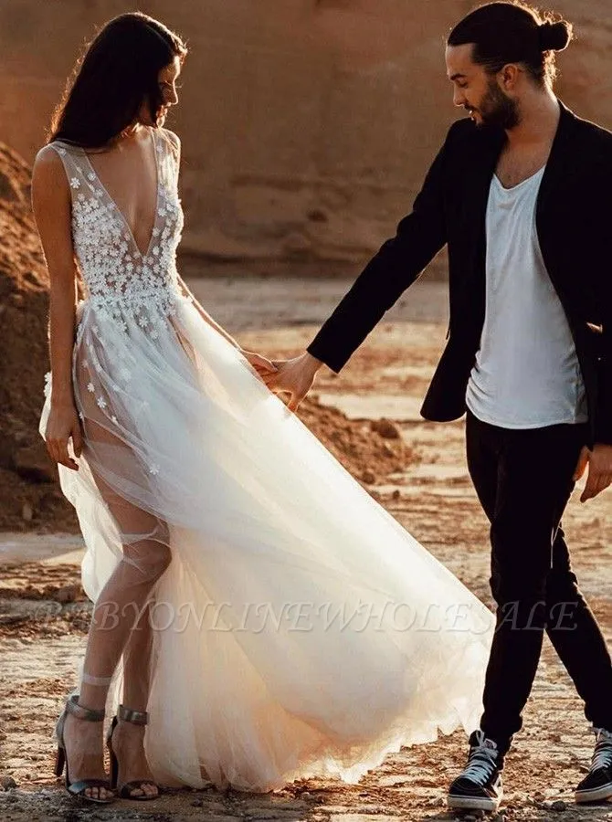 Looking for in , Princess style, and Gorgeous Appliques work? Babyonlinewholesale has all covered on this elegant Sexy V-Neck Tulle Lace Appliques Sleeveless Wedding Reception Dress.