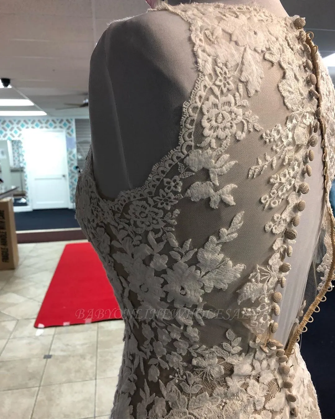 Sexy Spaghetti-Strap Appliques Wedding Dresses | Rubbons Sheer Sleeveless Floral Bridal Gowns