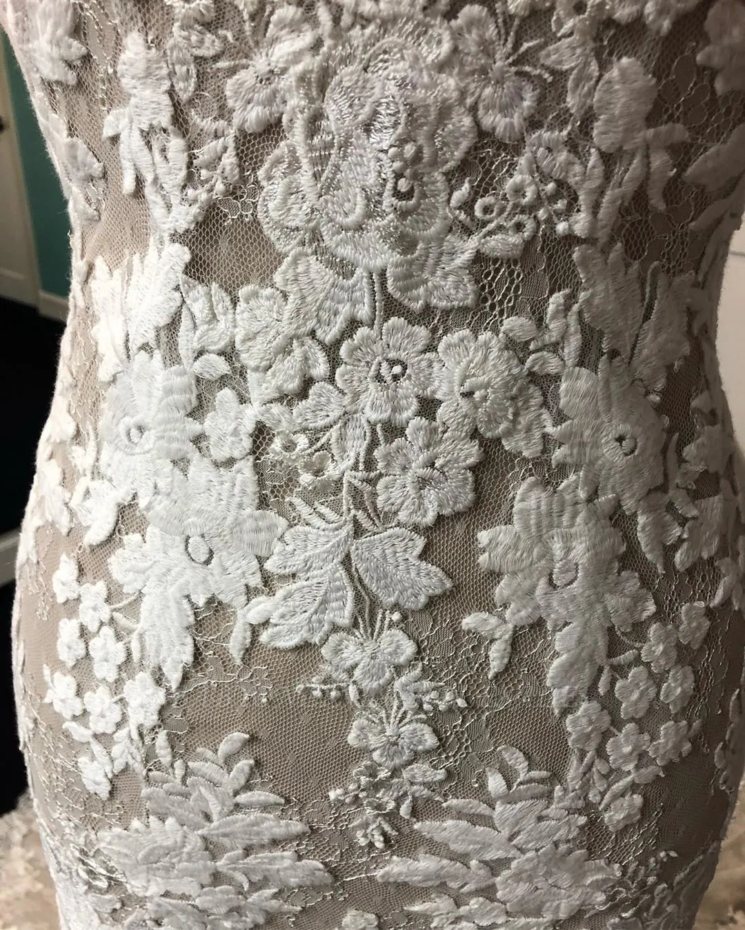 Mermaid Spaghetti Sleeveless Appliqued Lace Court Train Wedding Dresses
