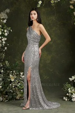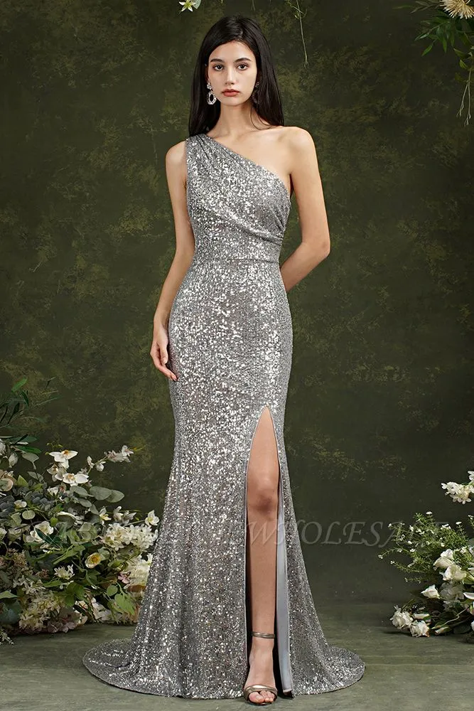 Buy you Silver One Shoulder Sleeveless Meramid Long Prom Dress online with babyonlinewholesale.com