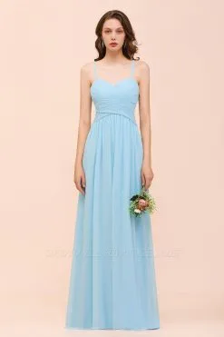 Be the first to review “Sky Blue Sweetheart Chiffon Long Bridesmaid Dress Aline Wedding Party Dress With Straps” Cancel reply