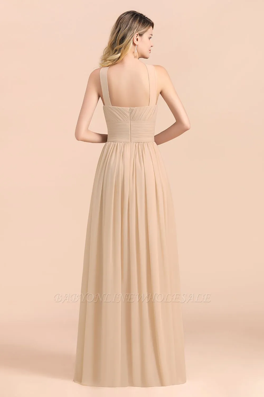 Looking for Bridesmaid Dresses in 100D Chiffon, A-line style, and elegant Draped work? Babyonlinewholesale has all covered on this unique Sleeveless Aline Bridesmaid Dress Soft Chiffon Backless Swing Dress.
