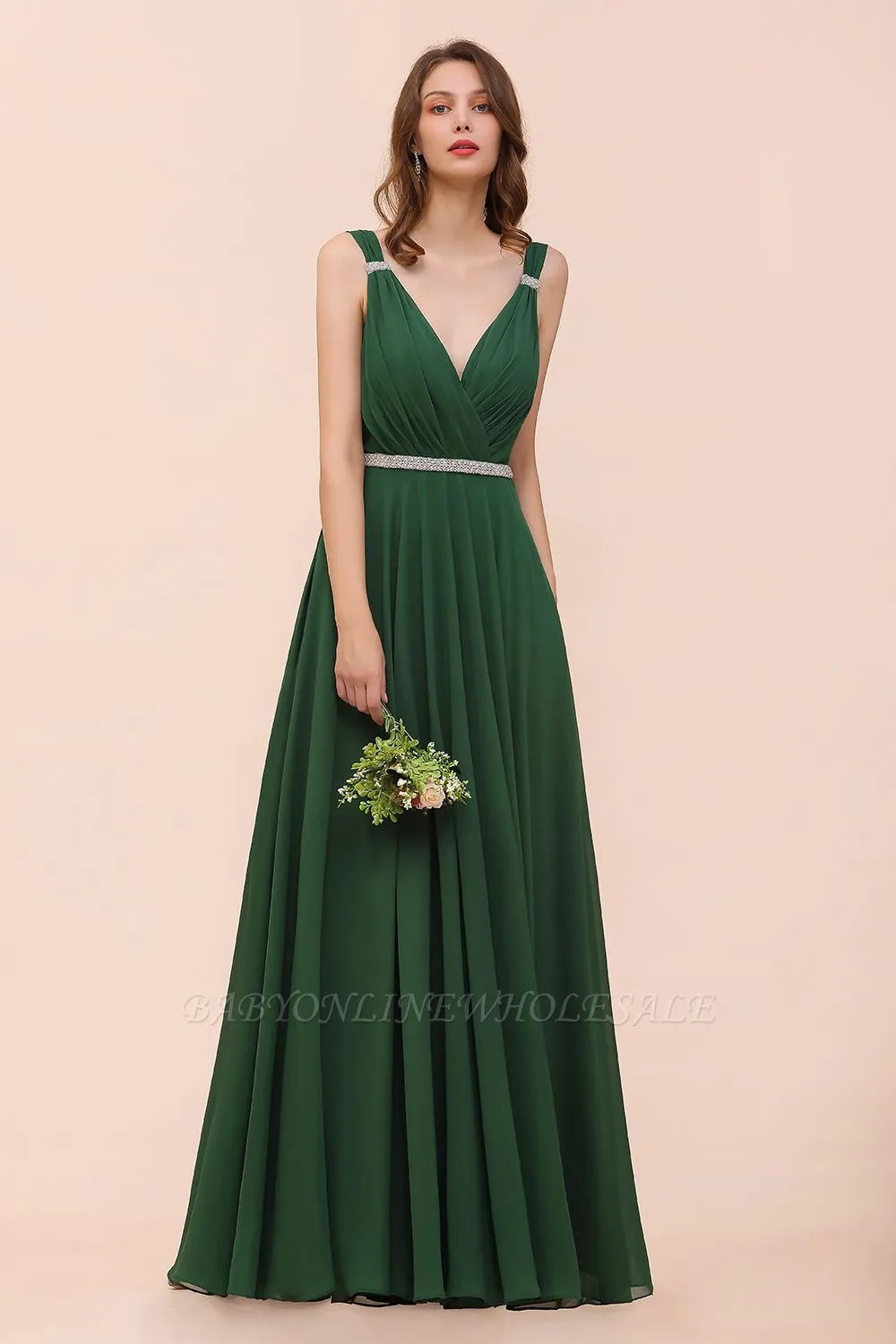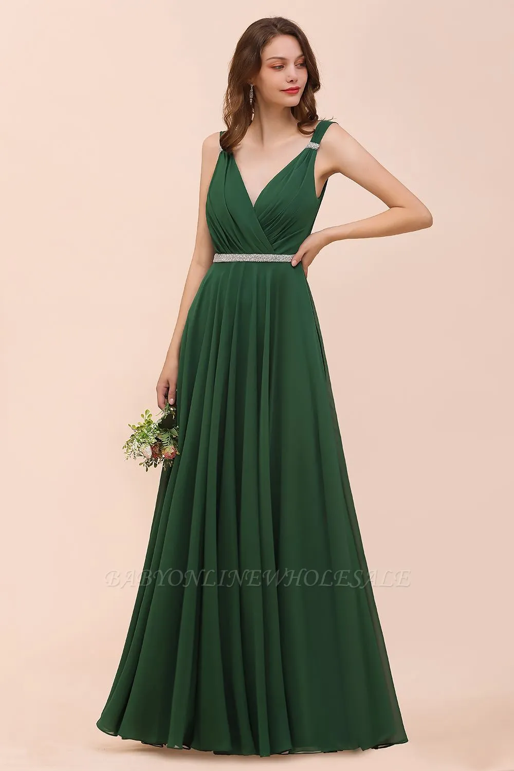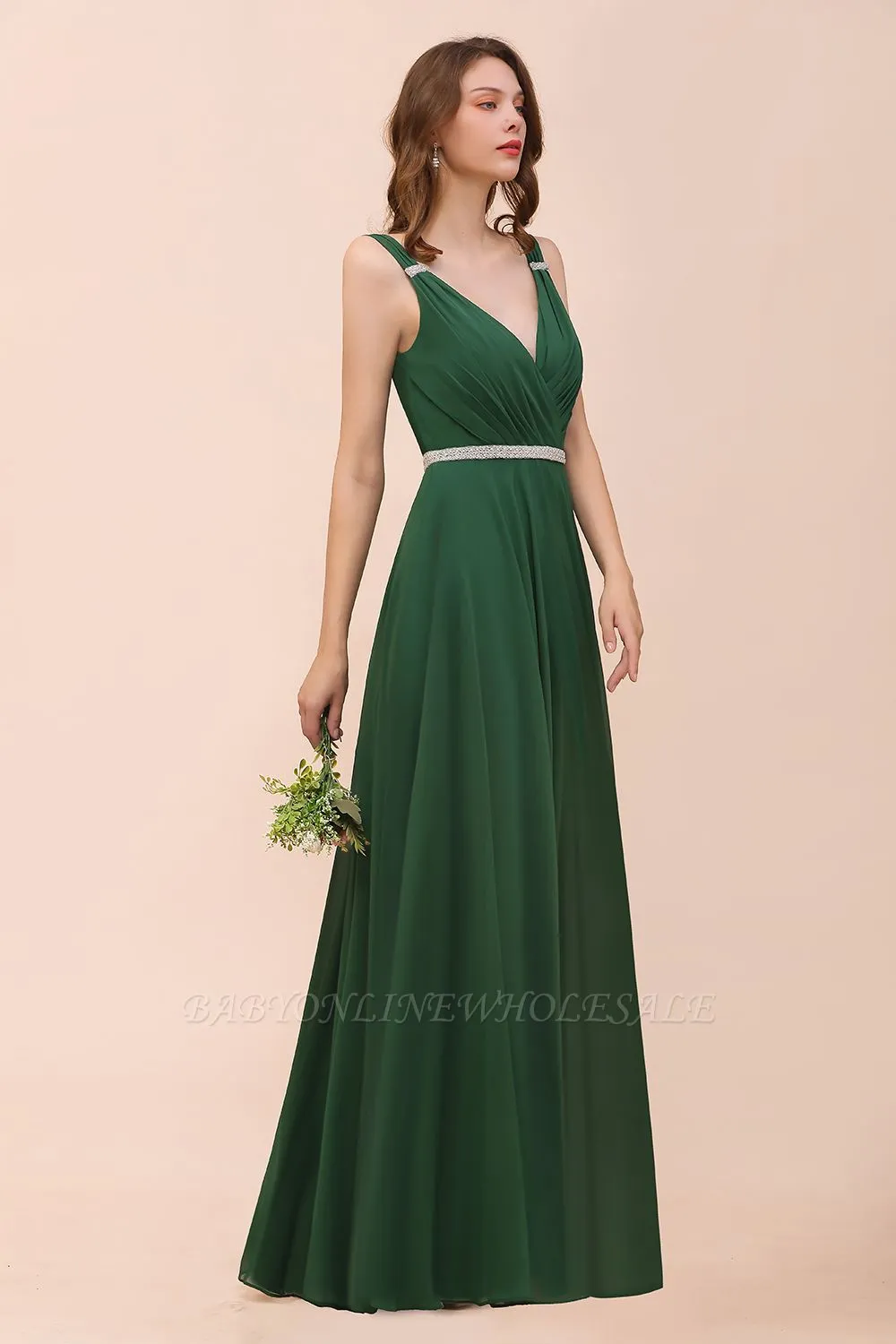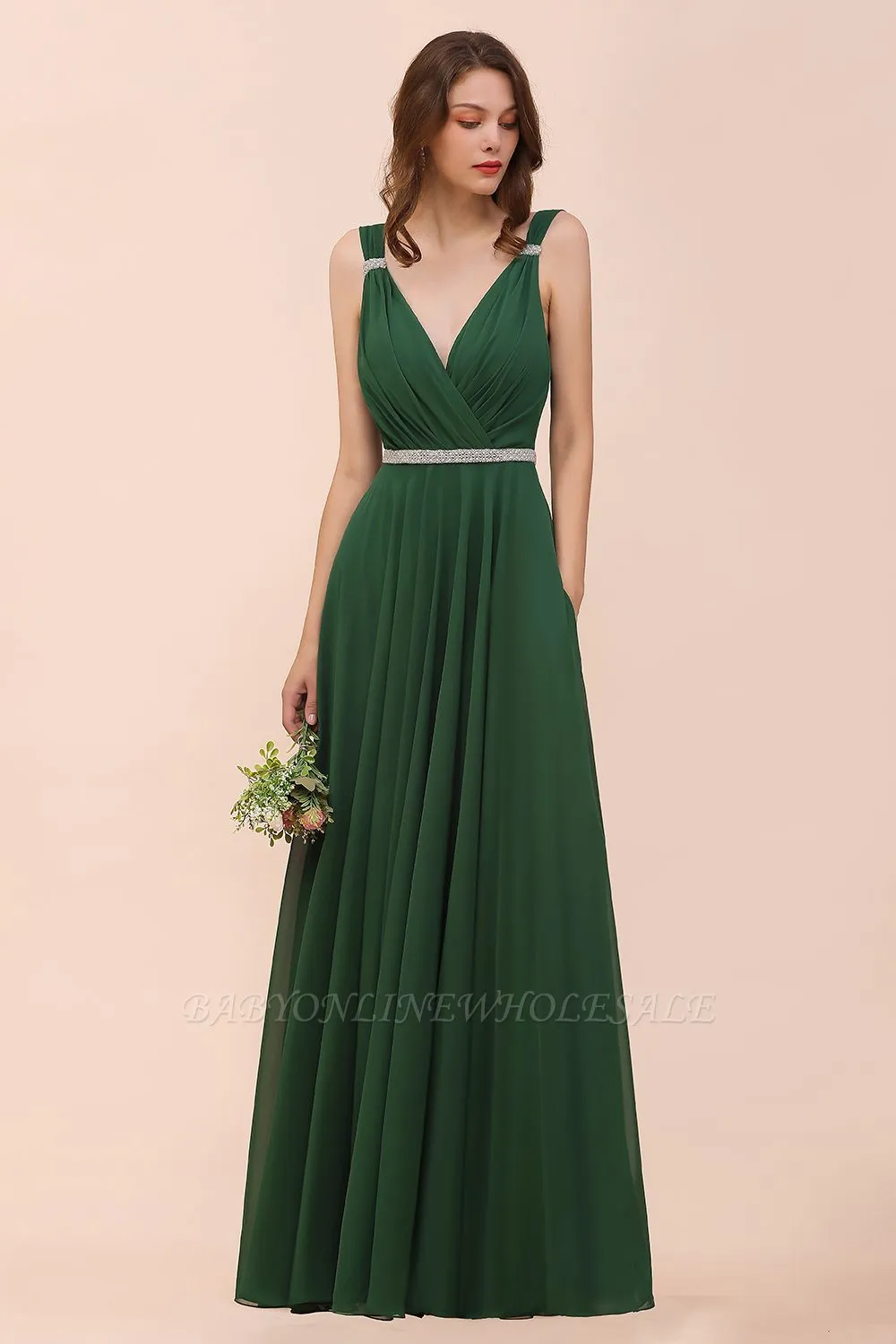 Looking for in 100D Chiffon, A-line style, and elegant Ribbons,Rhinestone work? Babyonlinewholesale has all covered on this unique Sleeveless V-Neck Aline Bridesmaid Dress Long Banquet Dress.